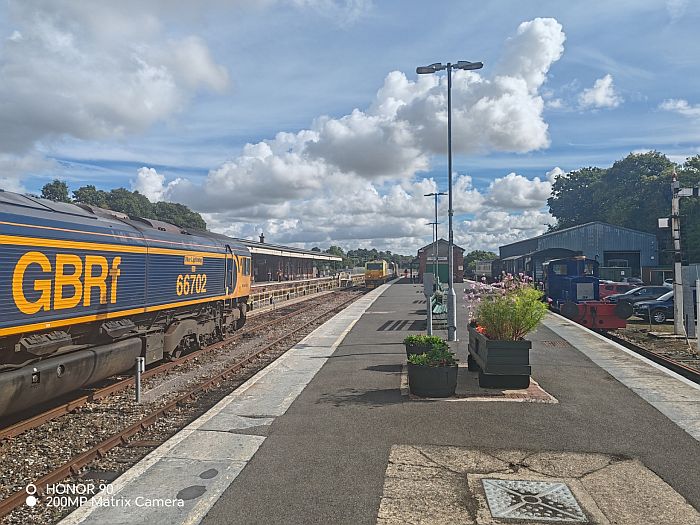 9 September 2025. Whilst 66702 'Blue Lightning' was stabled for a short while at Yeovil Junction (GBRF Railfreight), the Rail Head Treatment Train was routed into the other siding (Balfour Beatty). Yeovil Railway Centre's Fowler 'Sam' completes the picture. |