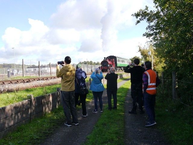 Walking tours took place and here visitors are waving at 'Pectin' with its train. (Photo courtesy Brian Haigh) |