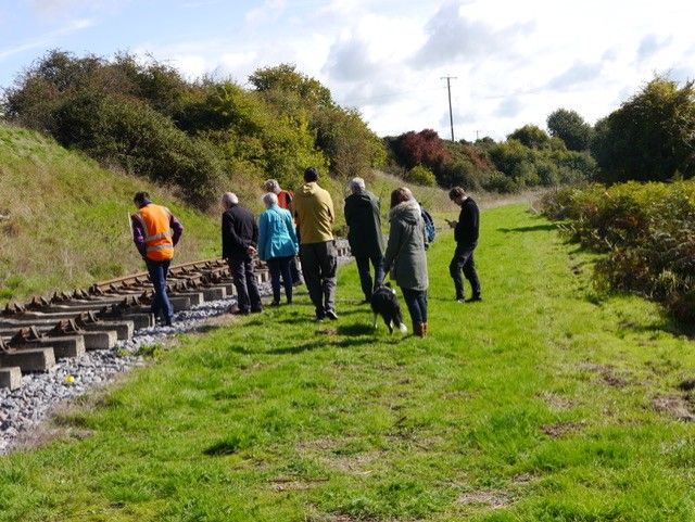 The walking tour now inspecting the South Chord where work has commenced to reroute and extend our Running Line. (Photo courtesy Brian Haigh) |